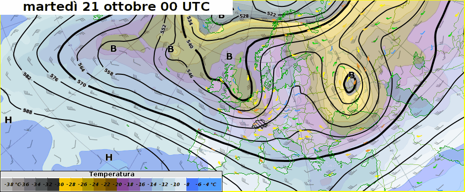 Dietro al fronte affluirà aria più fredda: il calo delle temperature sarà marcato, soprattutto in montagna, con lo zero termico in discesa da 2800 a circa 2100 metri. Alle basse quote, invece, il vento da nord manterrà le massime ancora piuttosto miti.